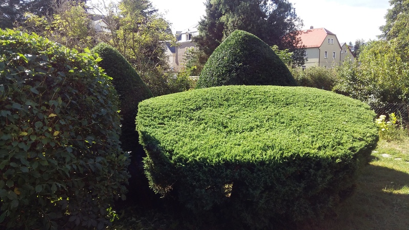 in den Garten. Sträucher und Bäume behalten